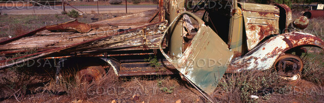1950s Morris tray truck quietly falling to pieces in wrecking yard. by Mal Austin