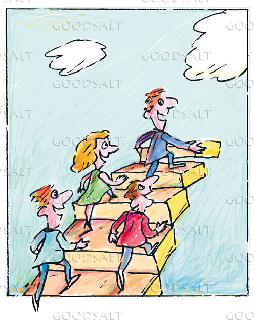 A group of people building their way to heaven. by Rolf Jansson