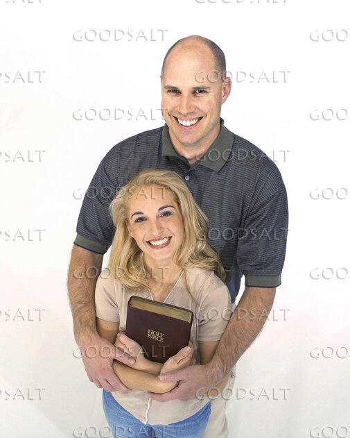 A man and his wife holding a Bible. by Sally Weimer