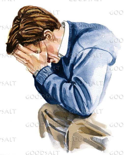 A man holding his hands to his face. by Stan Myers