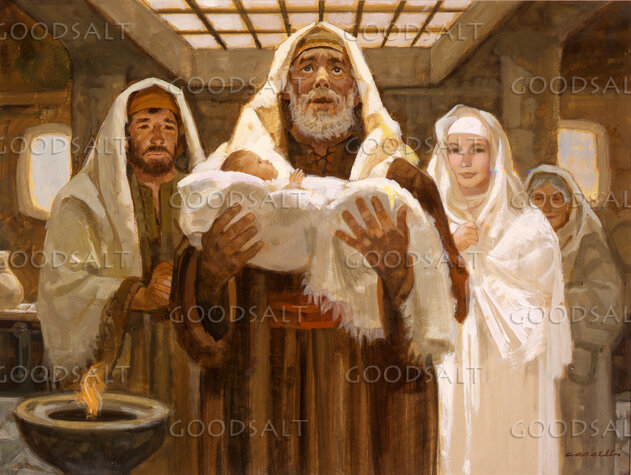 Simeon holds the newborn Messiah. by Lifeway Collection