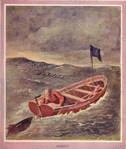 Adrift on a sea of fate boat storm fear drown doubt fear agnosticism shark atheism