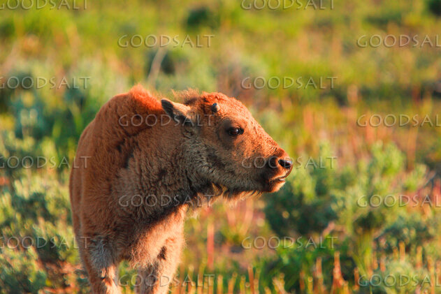 2. American Bison (Bison bison) calves playing in summer