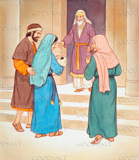 Luke 222 And when the time came for their purification according to the Law of Moses, they brought him up to Jerusalem to present him to the Lord23 (as it is written in the Law of the Lord, “Every male who first opens the womb shall be called holy to the Lord”)24 and to offer a sacrifice according to what is said in the Law of the Lord, “a pair of turtledoves, or two young pigeons.”25 Now there was a man in Jerusalem, whose name was Simeon, and this man was righteous and devout, waiting for the consolation of Israel, and the Holy Spirit was upon him.26 And it had been revealed to him by the Holy Spirit that he would not see death before he had seen the Lord's Christ.27 And he came in the Spirit into the temple, and when the parents brought in the child Jesus, to do for him according to the custom of the Law,28 he took him up in his arms and blessed God and said,29 “Lord, now you are letting your servant depart in peace, according to your word;30 for my eyes have seen your salvation31 that you have prepared in the presence of all peoples,32 a light for revelation to the Gentiles, and for glory to your people Israel.”33 And his father and his mother marveled at what was said about him.34 And Simeon blessed them and said to Mary his mother, “Behold, this child is appointed for the fall and rising of many in Israel, and for a sign that is opposed35 (and a sword will pierce through your own soul also), so that thoughts from many hearts may be revealed.”36 And there was a prophetess, Anna, the daughter of Phanuel, of the tribe of Asher. She was advanced in years, having lived with her husband seven years from when she was a virgin,37 and then as a widow until she was eighty-four. She did not depart from the temple, worshiping with fasting and prayer night and day.38 And coming up at that very hour she began to give thanks to God and to speak of him to all who were waiting for the redemption of Jerusalem. | |