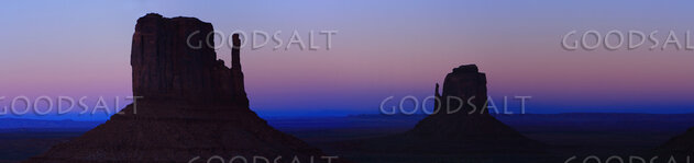 ARIZONA. Monument Valley. Panorama of The Mittens silhoutted