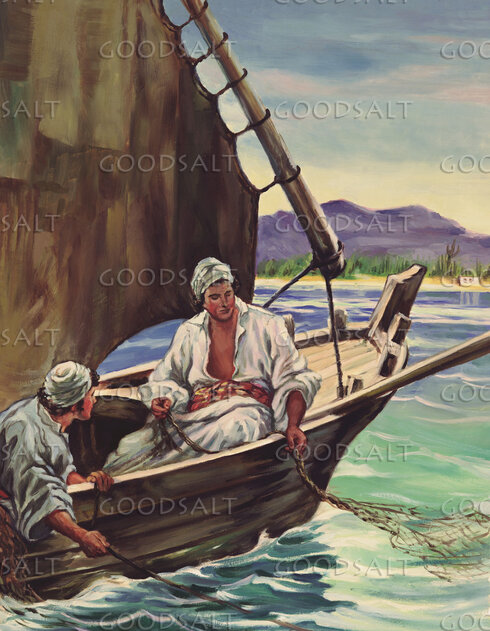 Luke 51 On one occasion, while the crowd was pressing in on him to hear the word of God, he was standing by the lake of Gennesaret,2 and he saw two boats by the lake, but the fishermen had gone out of them and were washing their nets.3 Getting into one of the boats, which was Simon's, he asked him to put out a little from the land. And he sat down and taught the people from the boat.4 And when he had finished speaking, he said to Simon, “Put out into the deep and let down your nets for a catch.”5 And Simon answered, “Master, we toiled all night and took nothing! But at your word I will let down the nets.”6 And when they had done this, they enclosed a large number of fish, and their nets were breaking.7 They signaled to their partners in the other boat to come and help them. And they came and filled both the boats, so that they began to sink.8 But when Simon Peter saw it, he fell down at Jesus' knees, saying, “Depart from me, for I am a sinful man, O Lord.”9 For he and all who were with him were astonished at the catch of fish that they had taken,10 and so also were James and John, sons of Zebedee, who were partners with Simon. And Jesus said to Simon, “Do not be afraid; from now on you will be catching men.”11 And when they had brought their boats to land, they left everything and followed him. | |
