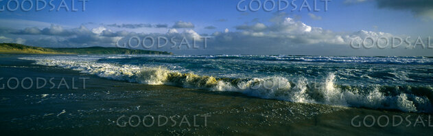 A picture of a beach with ocean waves on the sand. by Mal Austin