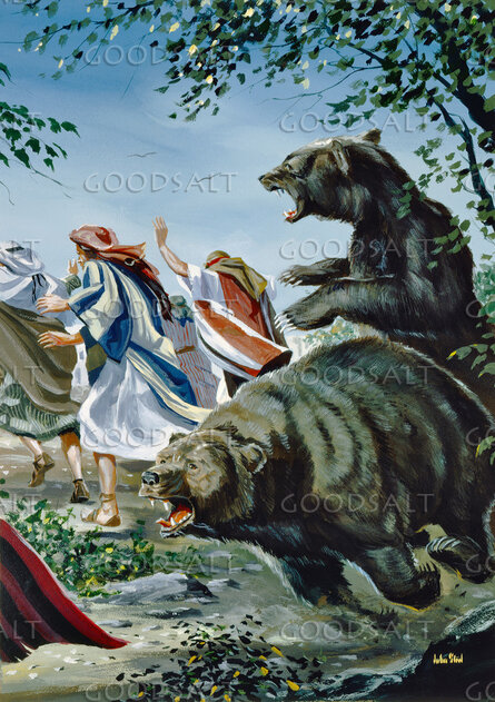 24 And he turned around, and when he saw them, he cursed them in the name of the LORD. And two she-bears came out of the woods and tore forty-two of the boys.