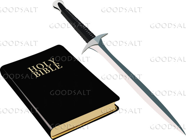 Holy Bible laying next to a sword. by Pavao Leskovar