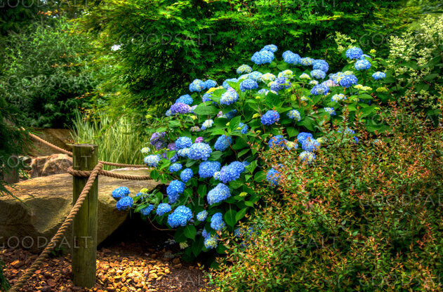 A beautiful display of blue hydrangea in a garden setting. by Deb Minnard