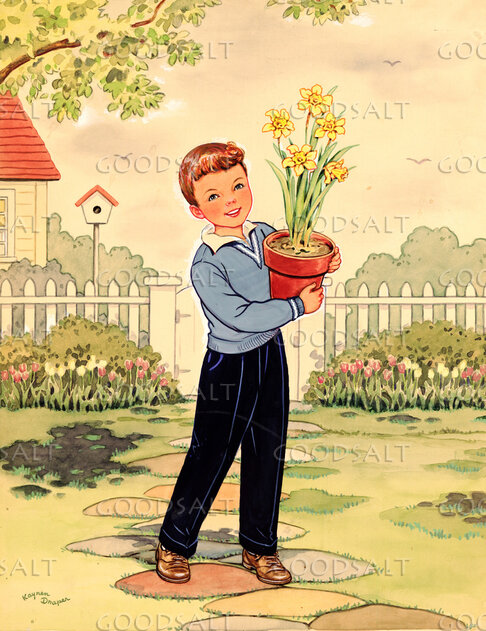 Secondary Keywordsamericana   boy   boys   carrying   children   daffodil   flowers   nature   outdoors   plant