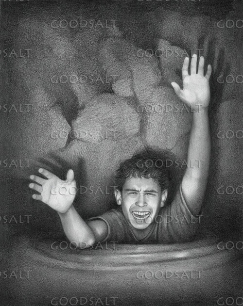 Frightened Teen sinks in well water by Darrel Tank