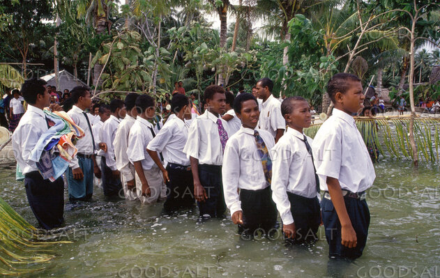 Boys Lining Up for Baptism at Kaisiga, Trobriand Islands