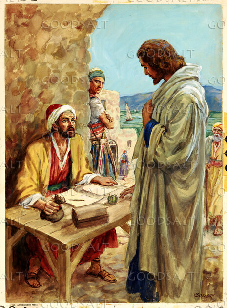 Luke 527 After this he went out and saw a tax collector named Levi, sitting at the tax booth. And he said to him, “Follow me.”28 And leaving everything, he rose and followed him.29 And Levi made him a great feast in his house, and there was a large company of tax collectors and others reclining at table with them.30 And the Pharisees and their scribes grumbled at his disciples, saying, “Why do you eat and drink with tax collectors and sinners?”31 And Jesus answered them, “Those who are well have no need of a physician, but those who are sick.32 I have not come to call the righteous but sinners to repentance.” Mark 213 He went out again beside the sea, and all the crowd was coming to him, and he was teaching them.14 And as he passed by, he saw Levi the son of Alphaeus sitting at the tax booth, and he said to him, “Follow me.” And he rose and followed him.15 And as he reclined at table in his house, many tax collectors and sinners were reclining with Jesus and his disciples, for there were many who followed him.16 And the scribes of the Pharisees, when they saw that he was eating with sinners and tax collectors, said to his disciples, “Why does he eat with tax collectors and sinners?”17 And when Jesus heard it, he said to them, “Those who are well have no need of a physician, but those who are sick. I came not to call the righteous, but sinners.” Matthew 99 As Jesus passed on from there, he saw a man called Matthew sitting at the tax booth, and he said to him, “Follow me.” And he rose and followed him.10 And as Jesus reclined at table in the house, behold, many tax collectors and sinners came and were reclining with Jesus and his disciples.11 And when the Pharisees saw this, they said to his disciples, “Why does your teacher eat with tax collectors and sinners?”12 But when he heard it, he said, “Those who are well have no need of a physician, but those who are sick.13 Go and learn what this means, ‘I desire mercy, and not sacrifice.’ For I came not to call the righteous, but sinners.” | |