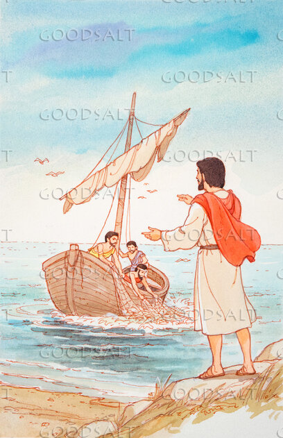 5 Jesus said to them, “Children, do you have any fish?” They answered him, “No.”6 He said to them, “Cast the net on the right side of the boat, and you will find some.” So they cast it, and now they were not able to haul it in, because of the quantity of fish.