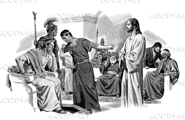 During His examination, Pilate hears a message from his wife informing him to not do anything wrong to Jesus, as she has had a dream about Him. by IDEALS Collections