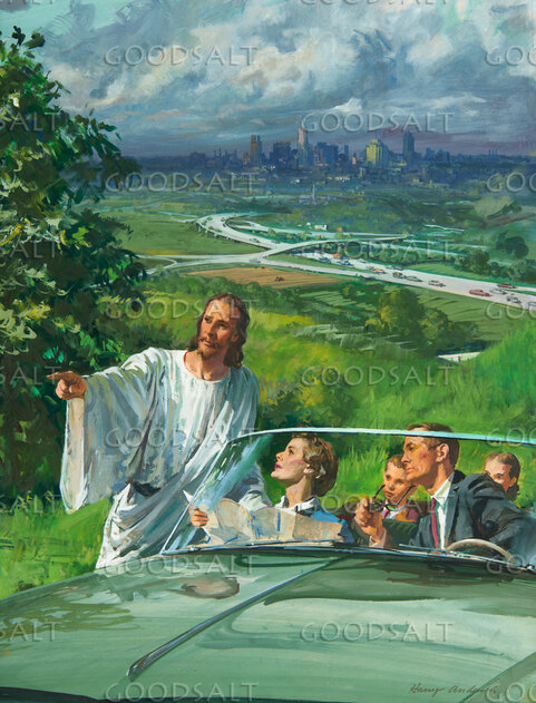 Jesus points the way for a family in an auto by Review & Herald Publishing