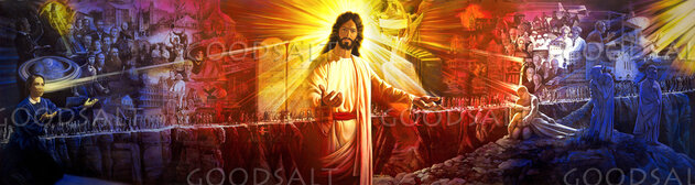 Elfred Lee mural created for the General Conference of Seventh-day Adventists depicting Adventist history and prophecy. by Elfred Lee