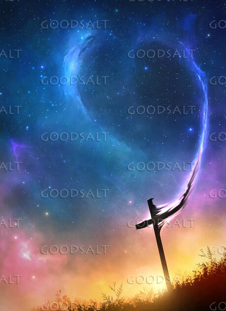 A cross fades away in to a heart shaped nebula by Kevin Carden