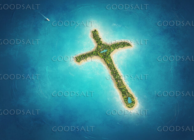 A secluded island in the ocean in the shape of a cross. by Kevin Carden