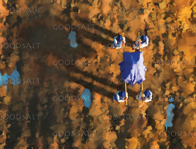 Priests carry the Ark of the Covenant to the middle of the Jordan river by General Conference