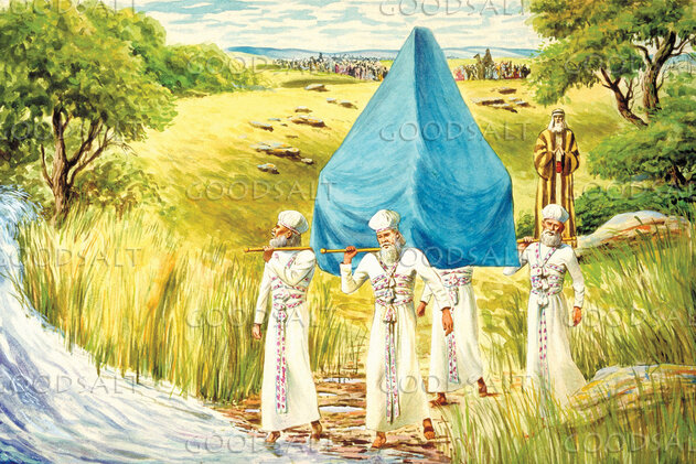 Joshua 314 So when the people set out from their tents to pass over the Jordan with the priests bearing the ark of the covenant before the people,15 and as soon as those bearing the ark had come as far as the Jordan, and the feet of the priests bearing the ark were dipped in the brink of the water (now the Jordan overflows all its banks throughout the time of harvest),16 the waters coming down from above stood and rose up in a heap very far away, at Adam, the city that is beside Zarethan, and those flowing down toward the Sea of the Arabah, the Salt Sea, were completely cut off. And the people passed over opposite Jericho.17 Now the priests bearing the ark of the covenant of the LORD stood firmly on dry ground in the midst of the Jordan, and all Israel was passing over on dry ground until all the nation finished passing over the Jordan. Joshua 36 And Joshua said to the priests, “Take up the ark of the covenant and pass on before the people.” So they took up the ark of the covenant and went before the people. | |