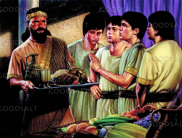 Daniel and his three friends are refusing the rich food offered by the king's servant. by Lifeway Collection