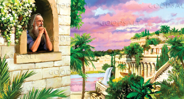 Daniel prays at his window in Babylon. by General Conference