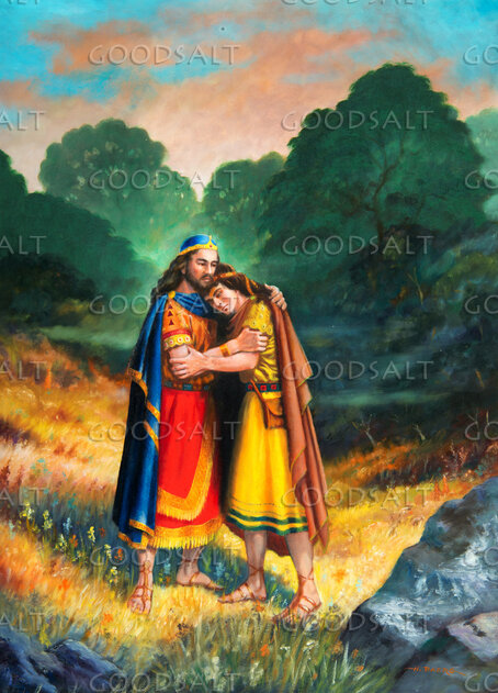 1 As soon as he had finished speaking to Saul, the soul of Jonathan was knit to the soul of David, and Jonathan loved him as his own soul.