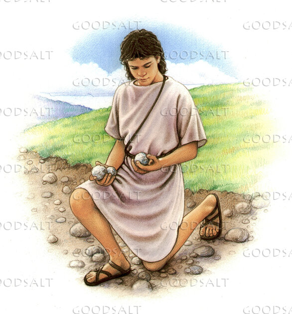 David chooses five smooth stones to fight Goliath by Darrel Tank