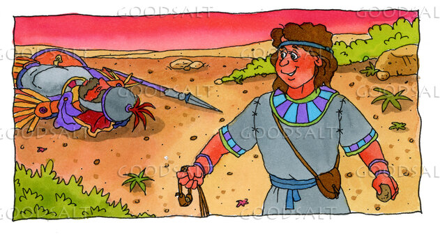 48 When the Philistine arose and came and drew near to meet David, David ran quickly toward the battle line to meet the Philistine.49 And David put his hand in his bag and took out a stone and slung it and struck the Philistine on his forehead. The stone sank into his forehead, and he fell on his face to the ground.50 So David prevailed over the Philistine with a sling and with a stone, and struck the Philistine and killed him. There was no sword in the hand of David.51 Then David ran and stood over the Philistine and took his sword and drew it out of its sheath and killed him and cut off his head with it. When the Philistines saw that their champion was dead, they fled.