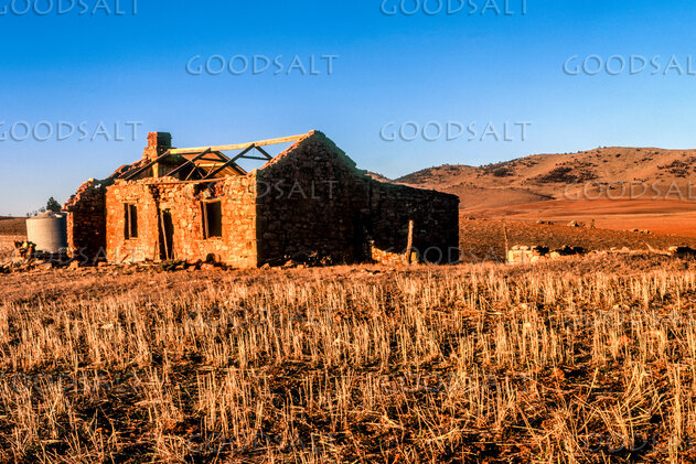 Historic abandoned house on lonely land of tiny pioneering farm. by Mal Austin
