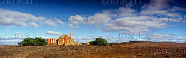 Historic abandoned house on lonely land of tiny pioneering farm. by Mal Austin