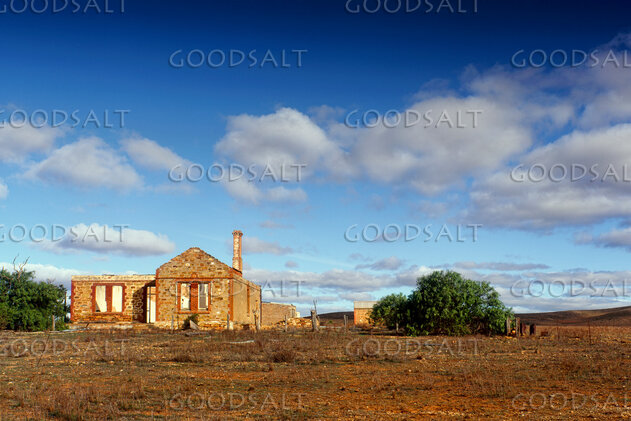 Historic abandoned house on lonely land of tiny pioneering farm. by Mal Austin
