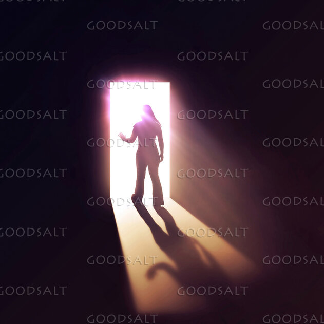 A woman walks through a doorway into the light. by Kevin Carden
