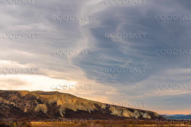 Huge lenticular clouds put on an awesome display dwarfing the sculpture shaped ground. by Mal Austin