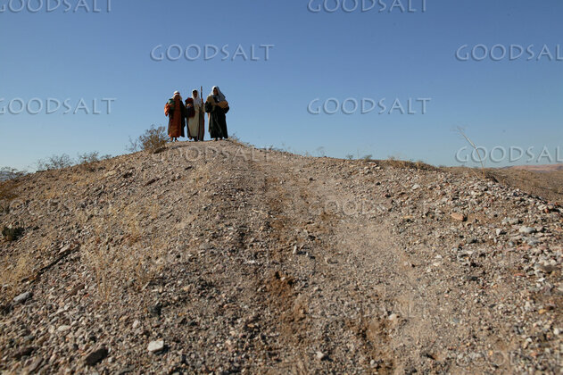 8. Three  Isrealites Atop a Hill on Journey in Desert