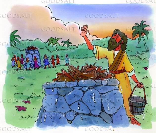 30 Then Elijah said to all the people, “Come near to me.” And all the people came near to him. And he repaired the altar of the LORD that had been thrown down.31 Elijah took twelve stones, according to the number of the tribes of the sons of Jacob, to whom the word of the LORD came, saying, “Israel shall be your name,”32 and with the stones he built an altar in the name of the LORD. And he made a trench about the altar, as great as would contain two seahs of seed.33 And he put the wood in order and cut the bull in pieces and laid it on the wood. And he said, “Fill four jars with water and pour it on the burnt offering and on the wood.”34 And he said, “Do it a second time.” And they did it a second time. And he said, “Do it a third time.” And they did it a third time.35 And the water ran around the altar and filled the trench also with water.36 And at the time of the offering of the oblation, Elijah the prophet came near and said, “O LORD, God of Abraham, Isaac, and Israel, let it be known this day that you are God in Israel, and that I am your servant, and that I have done all these things at your word.37 Answer me, O LORD, answer me, that this people may know that you, O LORD, are God, and that you have turned their hearts back.”