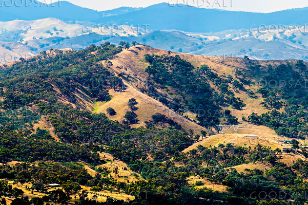 Endless ridge tops and scattered trees from the heights above. by Mal Austin