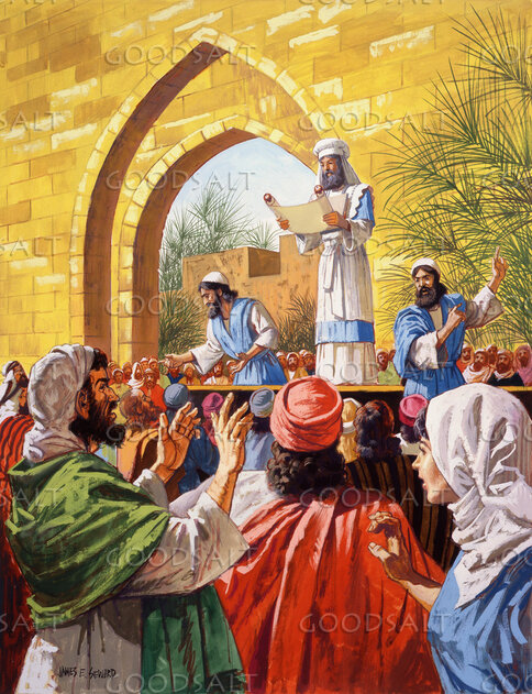 1 And all the people gathered as one man into the square before the Water Gate. And they told Ezra the scribe to bring the Book of the Law of Moses that the LORD had commanded Israel.2 So Ezra the priest brought the Law before the assembly, both men and women and all who could understand what they heard, on the first day of the seventh month.3 And he read from it facing the square before the Water Gate from early morning until midday, in the presence of the men and the women and those who could understand. And the ears of all the people were attentive to the Book of the Law.