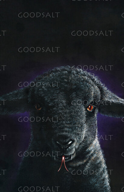 A black lamb with red eyes and a serpent's tongue. by Darrel Tank