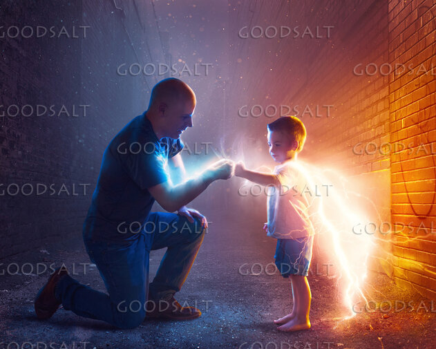 A father spends time with his child pretending to be a superhero. by Kevin Carden
