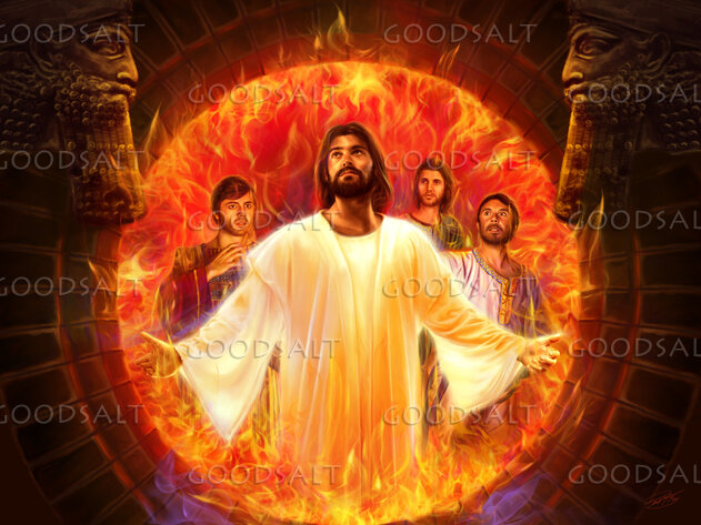 19 Then Nebuchadnezzar was filled with fury, and the expression of his face was changed against Shadrach, Meshach, and Abednego. He ordered the furnace heated seven times more than it was usually heated.20 And he ordered some of the mighty men of his army to bind Shadrach, Meshach, and Abednego, and to cast them into the burning fiery furnace.21 Then these men were bound in their cloaks, their tunics, their hats, and their other garments, and they were thrown into the burning fiery furnace.22 Because the king's order was urgent and the furnace overheated, the flame of the fire killed those men who took up Shadrach, Meshach, and Abednego.23 And these three men, Shadrach, Meshach, and Abednego, fell bound into the burning fiery furnace.24 Then King Nebuchadnezzar was astonished and rose up in haste. He declared to his counselors, “Did we not cast three men bound into the fire?” They answered and said to the king, “True, O king.”25 He answered and said, “But I see four men unbound, walking in the midst of the fire, and they are not hurt; and the appearance of the fourth is like a son of the gods.”