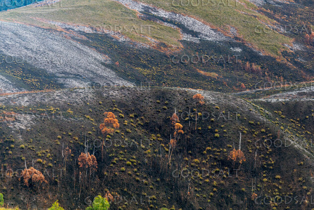 Colorful fire damaged land. by Mal Austin