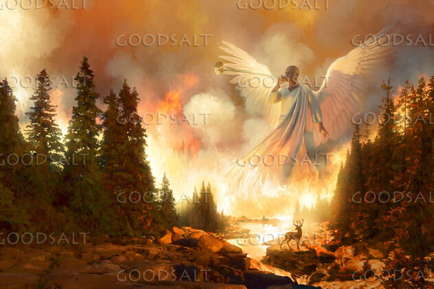 Revelation's trumpets: fire falls from heaven burning 1/3 of the earth's trees. by Steve Creitz