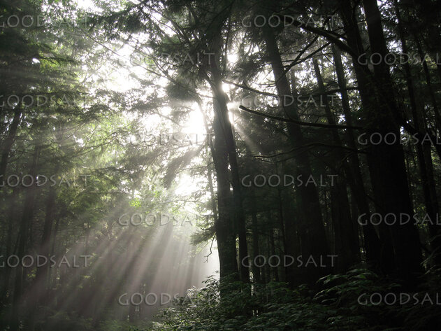 Rays of sunlight shining through a grove of trees. by Chris Weathered