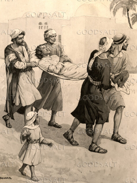 | Secondary Keywords | carrying crippled friends Jesus man new paralyzed roof testament |