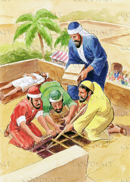 Luke 517 On one of those days, as he was teaching, Pharisees and teachers of the law were sitting there, who had come from every village of Galilee and Judea and from Jerusalem. And the power of the Lord was with him to heal.18 And behold, some men were bringing on a bed a man who was paralyzed, and they were seeking to bring him in and lay him before Jesus,19 but finding no way to bring him in, because of the crowd, they went up on the roof and let him down with his bed through the tiles into the midst before Jesus.20 And when he saw their faith, he said, “Man, your sins are forgiven you.”21 And the scribes and the Pharisees began to question, saying, “Who is this who speaks blasphemies? Who can forgive sins but God alone?”22 When Jesus perceived their thoughts, he answered them, “Why do you question in your hearts?23 Which is easier, to say, ‘Your sins are forgiven you,’ or to say, ‘Rise and walk’?24 But that you may know that the Son of Man has authority on earth to forgive sins”—he said to the man who was paralyzed—“I say to you, rise, pick up your bed and go home.”25 And immediately he rose up before them and picked up what he had been lying on and went home, glorifying God.26 And amazement seized them all, and they glorified God and were filled with awe, saying, “We have seen extraordinary things today.” Mark 21 And when he returned to Capernaum after some days, it was reported that he was at home.2 And many were gathered together, so that there was no more room, not even at the door. And he was preaching the word to them.3 And they came, bringing to him a paralytic carried by four men.4 And when they could not get near him because of the crowd, they removed the roof above him, and when they had made an opening, they let down the bed on which the paralytic lay.5 And when Jesus saw their faith, he said to the paralytic, “Son, your sins are forgiven.”6 Now some of the scribes were sitting there, questioning in their hearts,7 “Why does this man speak like that? He is blaspheming! Who can forgive sins but God alone?”8 And immediately Jesus, perceiving in his spirit that they thus questioned within themselves, said to them, “Why do you question these things in your hearts?9 Which is easier, to say to the paralytic, ‘Your sins are forgiven,’ or to say, ‘Rise, take up your bed and walk’?10 But that you may know that the Son of Man has authority on earth to forgive sins”—he said to the paralytic—11 “I say to you, rise, pick up your bed, and go home.”12 And he rose and immediately picked up his bed and went out before them all, so that they were all amazed and glorified God, saying, “We never saw anything like this!” Matthew 91 And getting into a boat he crossed over and came to his own city.2 And behold, some people brought to him a paralytic, lying on a bed. And when Jesus saw their faith, he said to the paralytic, “Take heart, my son; your sins are forgiven.”3 And behold, some of the scribes said to themselves, “This man is blaspheming.”4 But Jesus, knowing their thoughts, said, “Why do you think evil in your hearts?5 For which is easier, to say, ‘Your sins are forgiven,’ or to say, ‘Rise and walk’?6 But that you may know that the Son of Man has authority on earth to forgive sins”—he then said to the paralytic—“Rise, pick up your bed and go home.”7 And he rose and went home.8 When the crowds saw it, they were afraid, and they glorified God, who had given such authority to men. | |