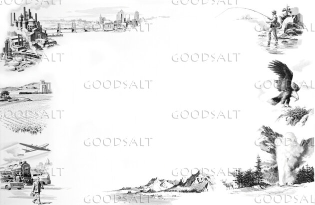 Vintage drawing of scenes from across the United States by IDEALS Collections