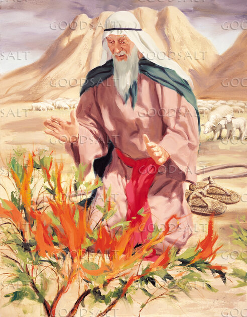 1 Now Moses was keeping the flock of his father-in-law, Jethro, the priest of Midian, and he led his flock to the west side of the wilderness and came to Horeb, the mountain of God.2 And the angel of the LORD appeared to him in a flame of fire out of the midst of a bush. He looked, and behold, the bush was burning, yet it was not consumed.3 And Moses said, “I will turn aside to see this great sight, why the bush is not burned.”4 When the LORD saw that he turned aside to see, God called to him out of the bush, “Moses, Moses!” And he said, “Here I am.”